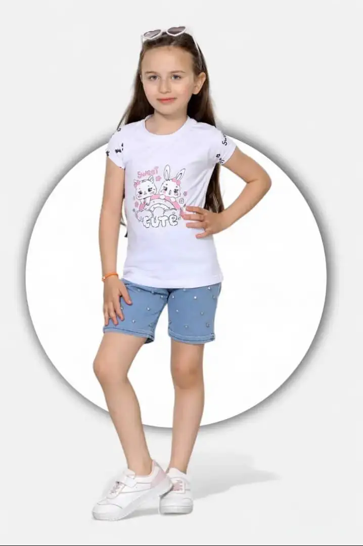 طقم بناتي بلوزة ليكرا شورط جنز💐