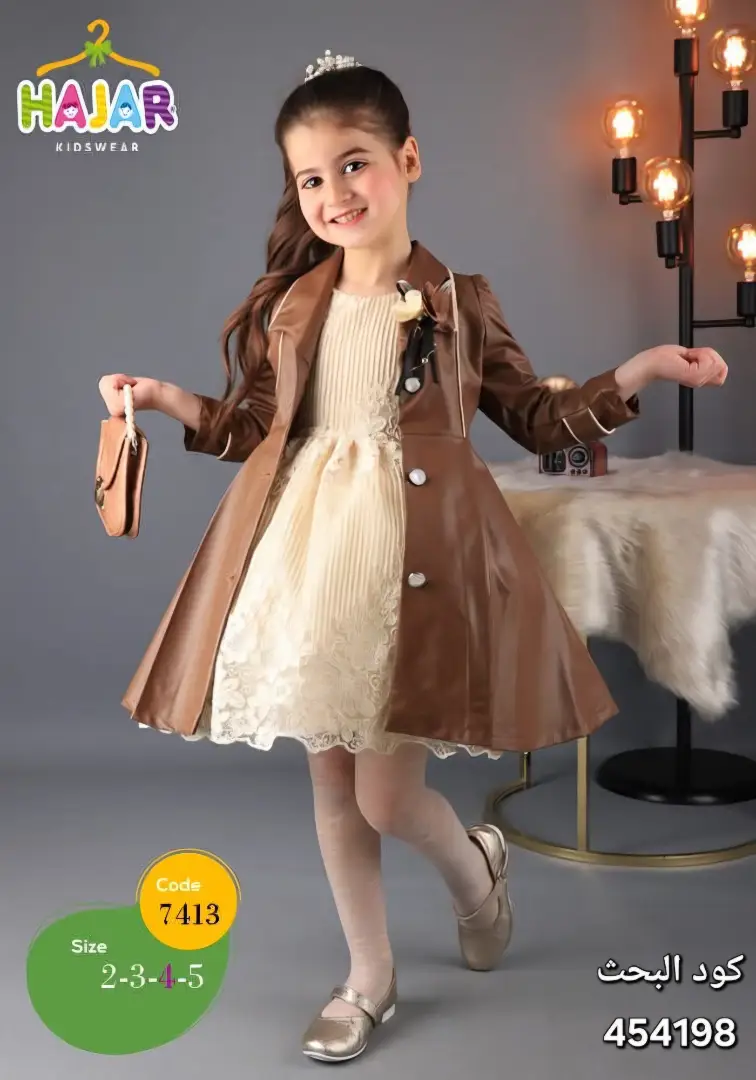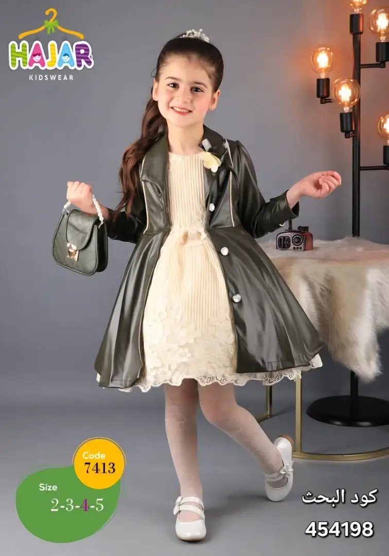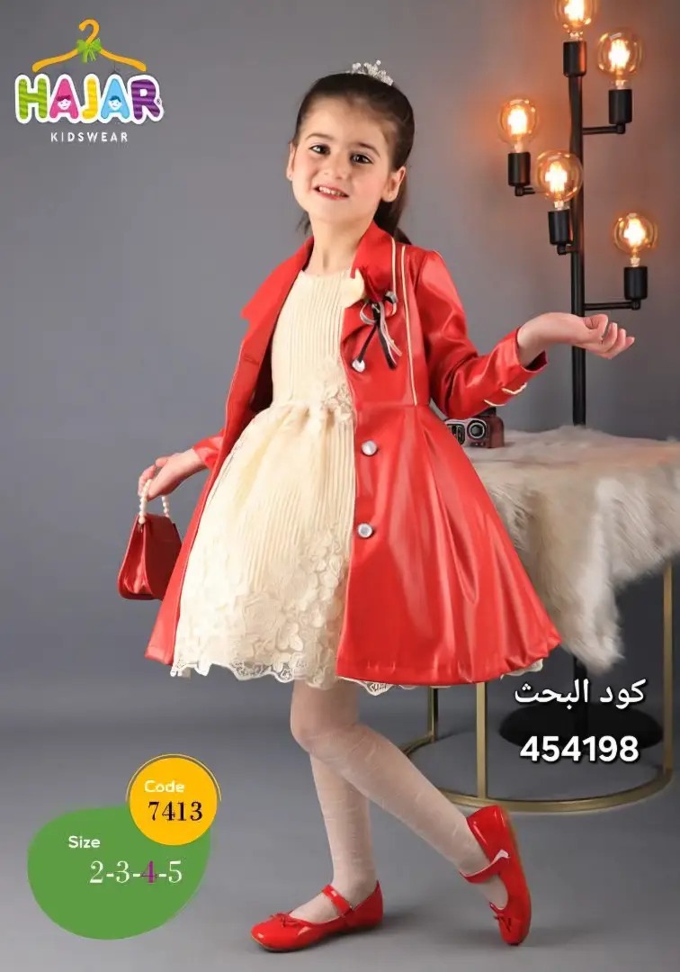 فستان دانتيل أنيق مزين بجاكيت جلد فاخر متوفر بعدة ألوان جذابة 💕 (أحمر ❤️ – زهري 🌷 – بني 🤎 – زيتي 💚).
