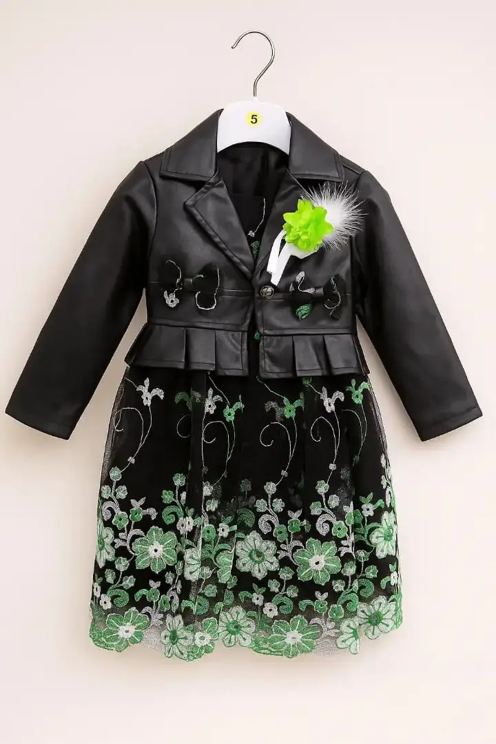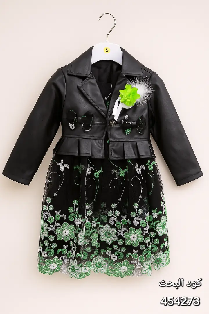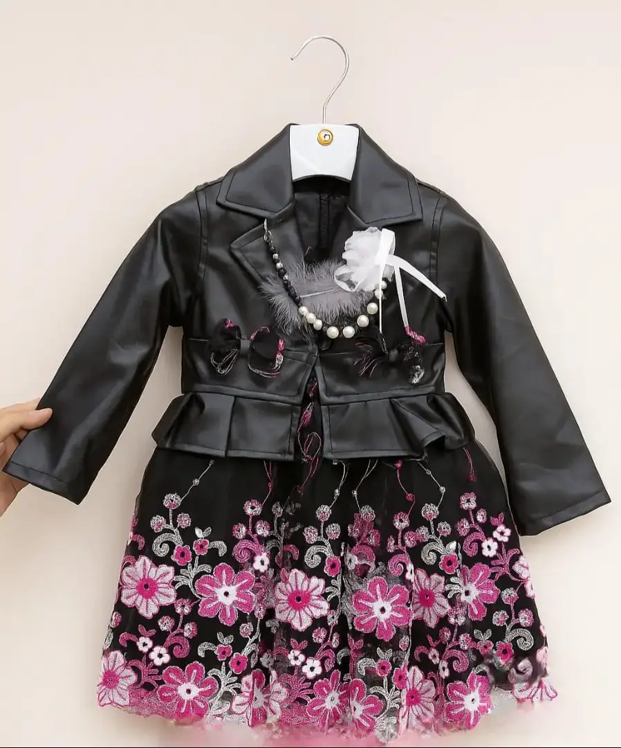 👗 فستان بناتي أنيق بلمسة جلد فاخرة 🌸