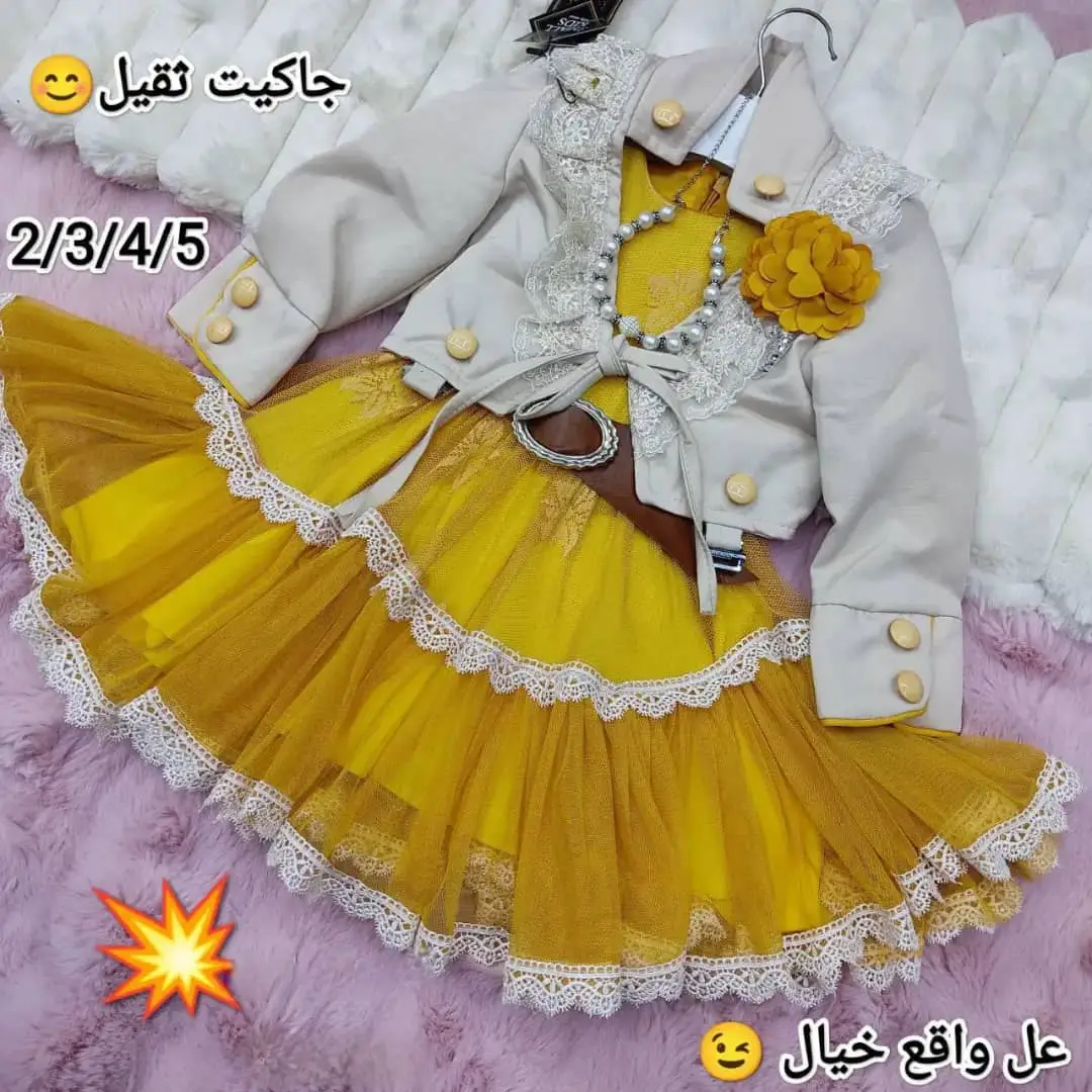 👑 فستان بناتي فخم مع جاكيت ثقيل ودانتيل راقي 🌸