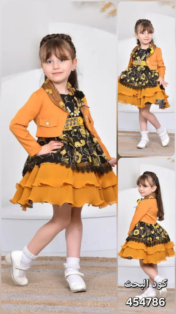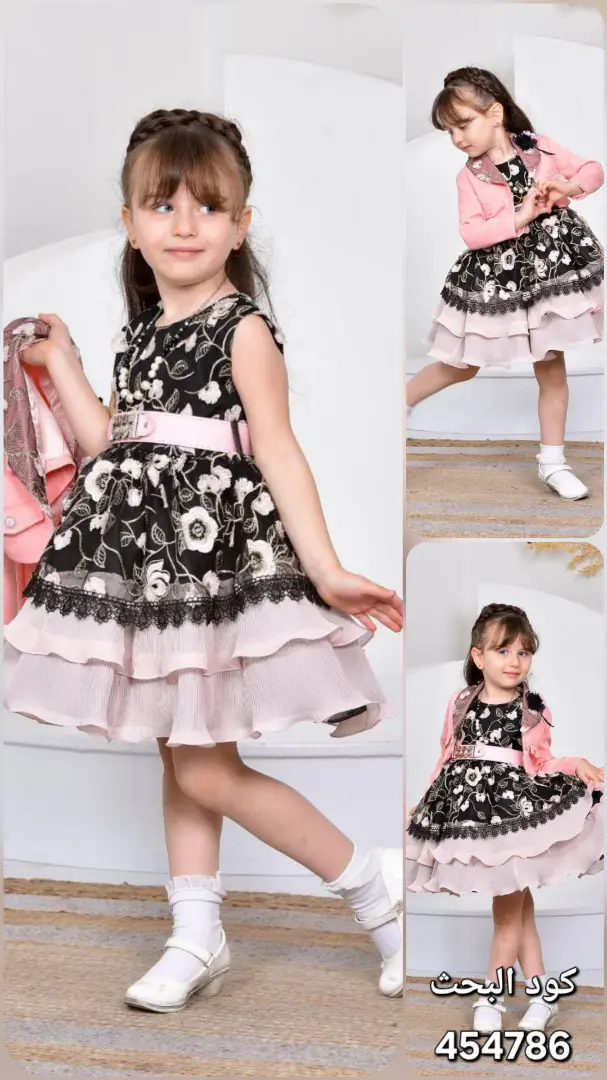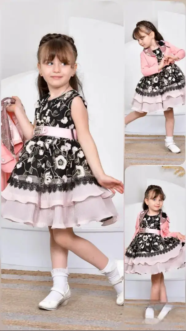 تصميم الطبقات: يتميز الفستان بتنورة متعددة الطبقات بكشكشة أنثوية ناعمة، مما يضيف حركة وجاذبية خاصة لإطلالة طفلتك. 💃