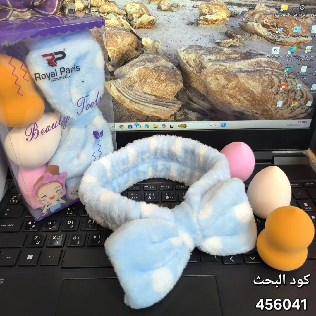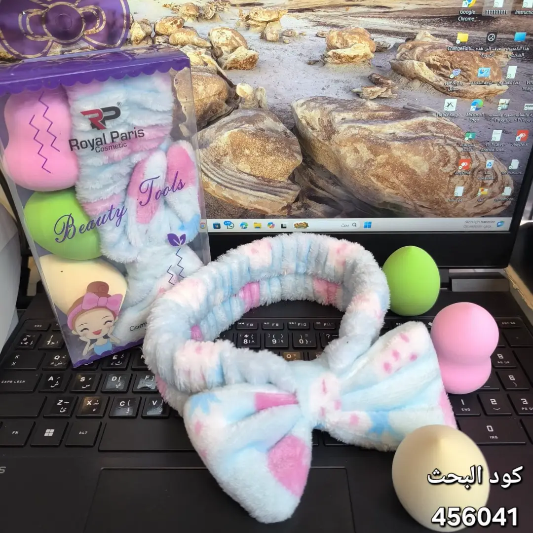 مجموعة "Beauty Tools" متكاملة! تحتوي على ربطة رأس ناعمة مخملية بتصميم فيونكة لإبعاد الشعر، وثلاث قطع إسفنج (بيوتي بلندر) بأشكال وألوان مختلفة لدمج وتوزيع كريم الأساس والكونسيلر بكل احترافية. 🎀✨
