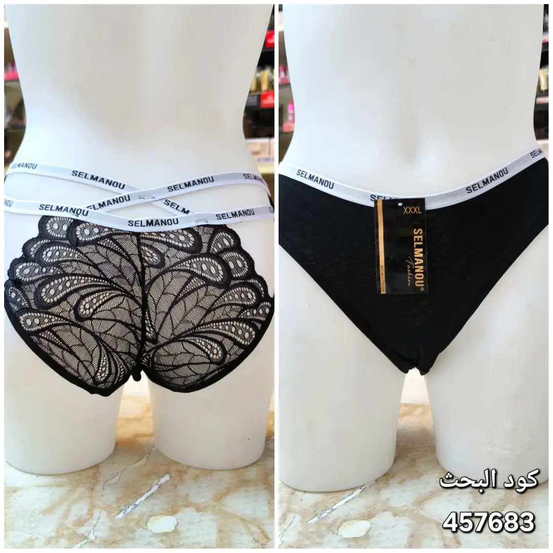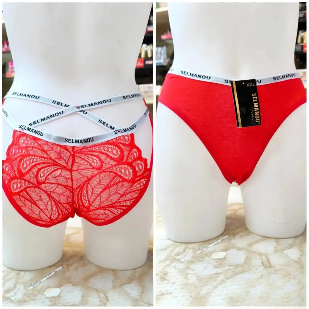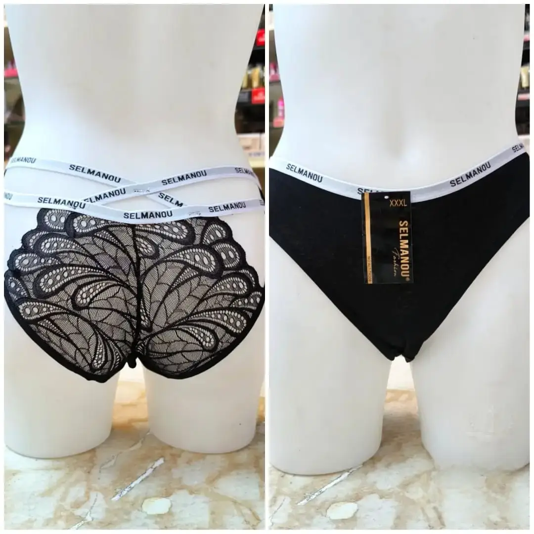 🎀سراويل داخلية "SELMANOU" بتفاصيل الدانتيل والخصر المزدوج. 💋