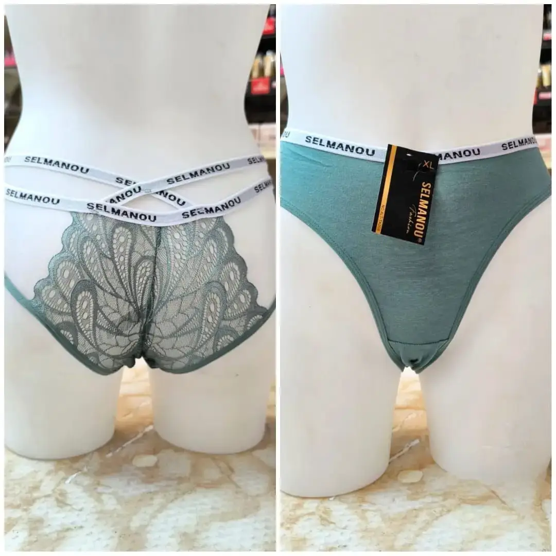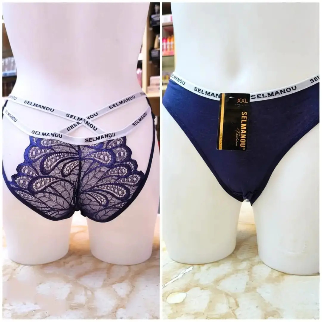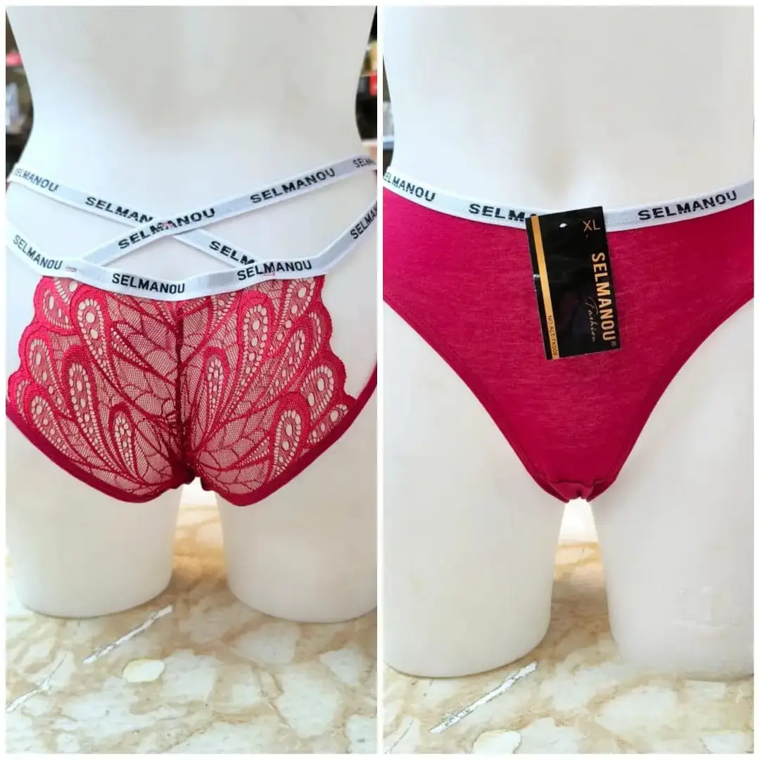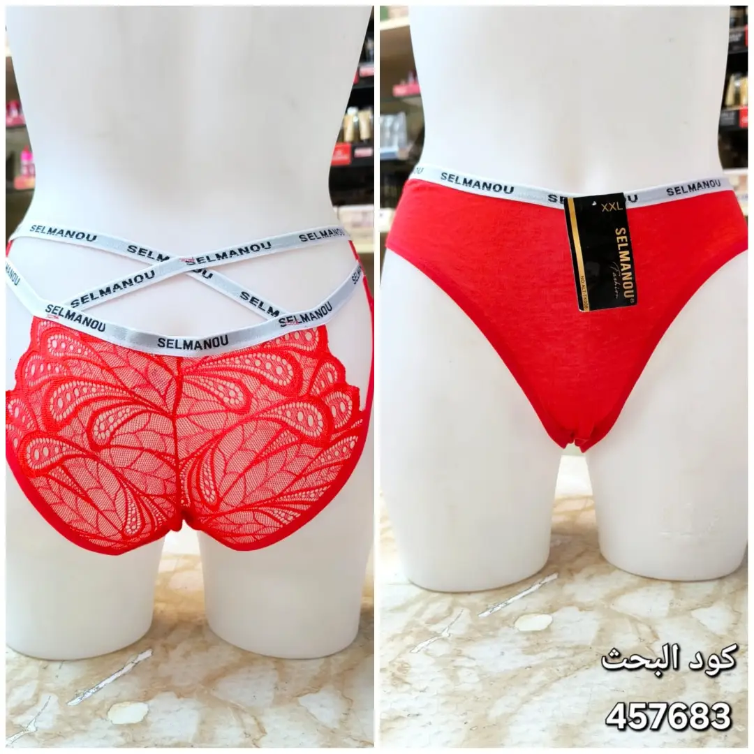 🎀سراويل داخلية "SELMANOU" بتفاصيل الدانتيل والخصر المزدوج. 💋