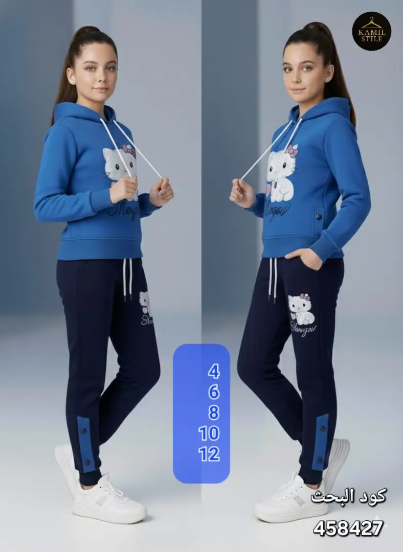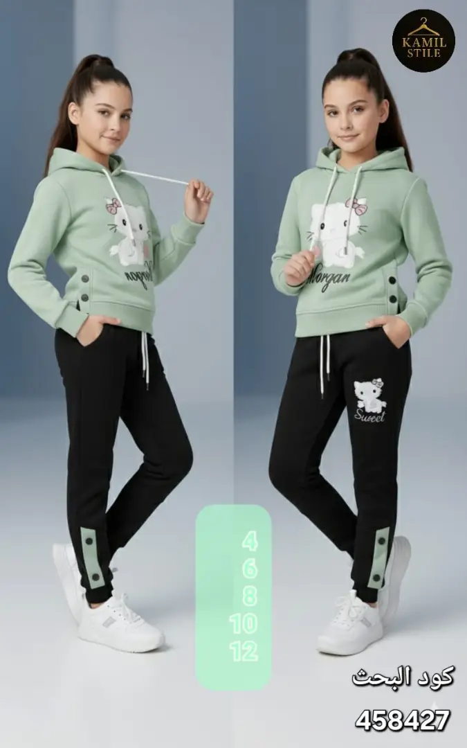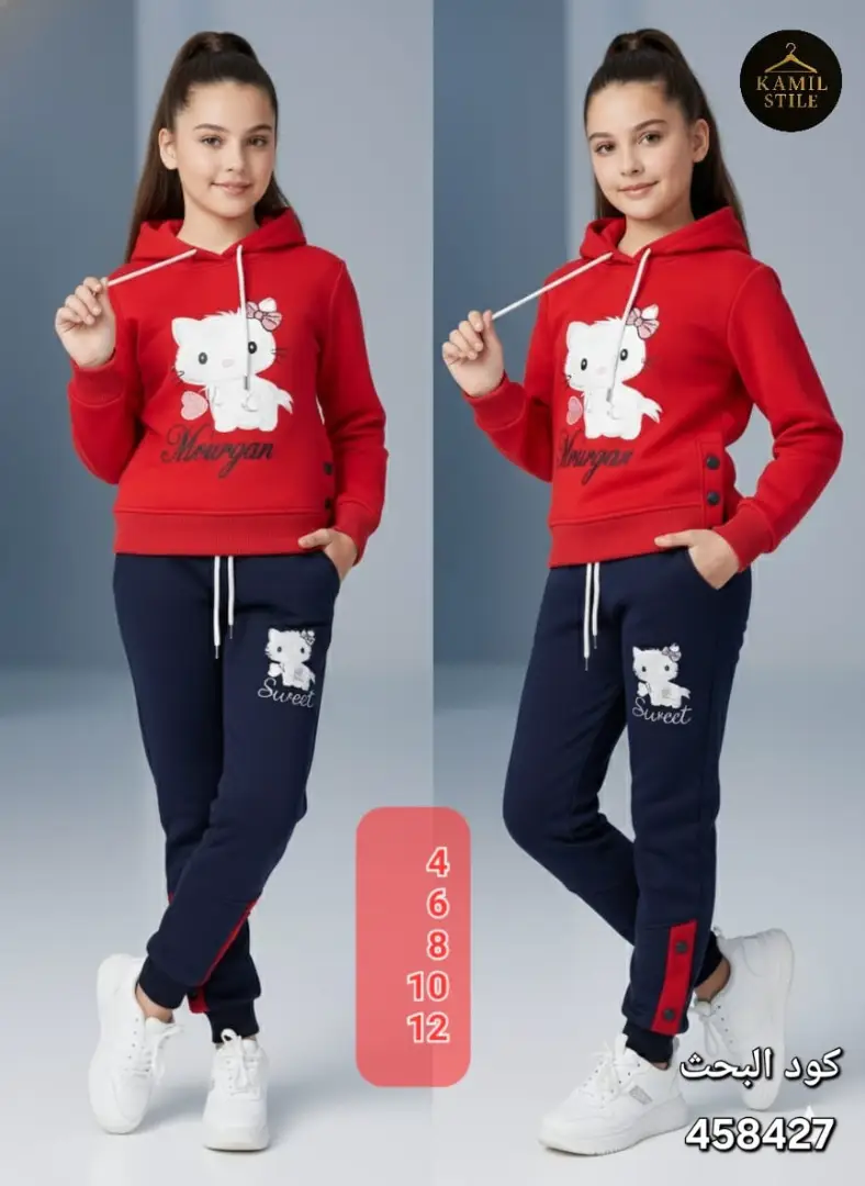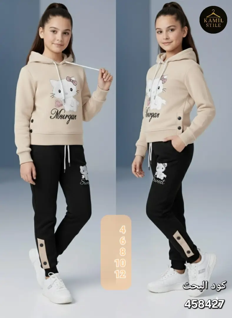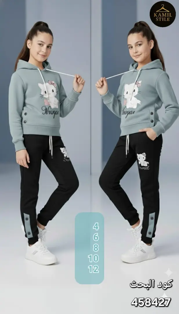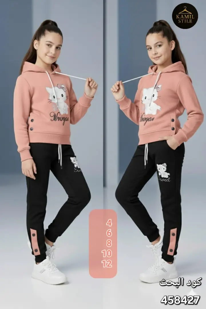 💖 الإطلالة: طقم مثالي للارتداء اليومي أو الأنشطة الرياضية، يوفر الدفء والراحة مع مظهر مرح وأنيق للفتيات الصغيرات.