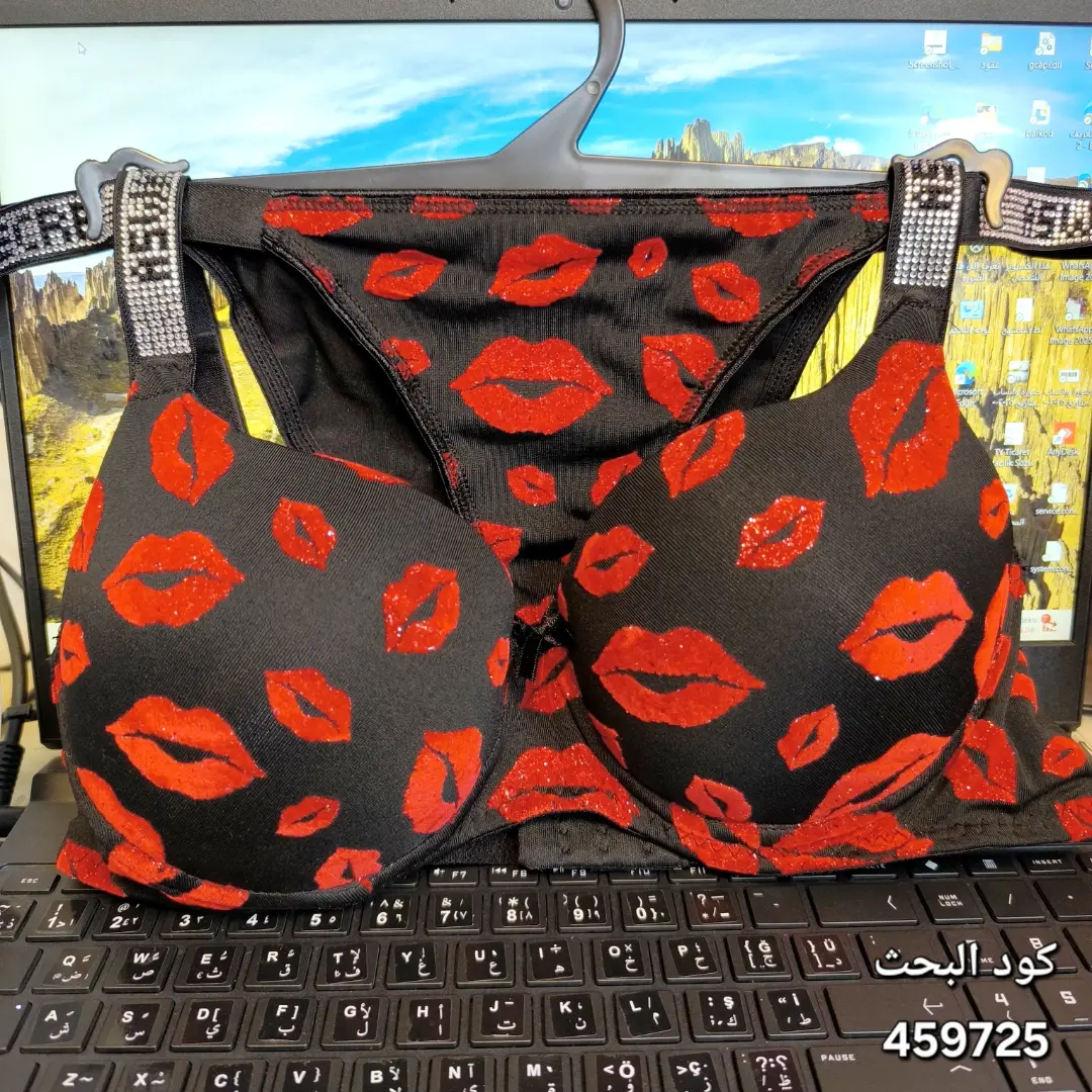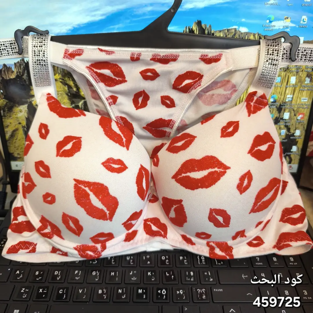 💋 طقم لانجري طبعة القبلة دبل حشوة ❤️