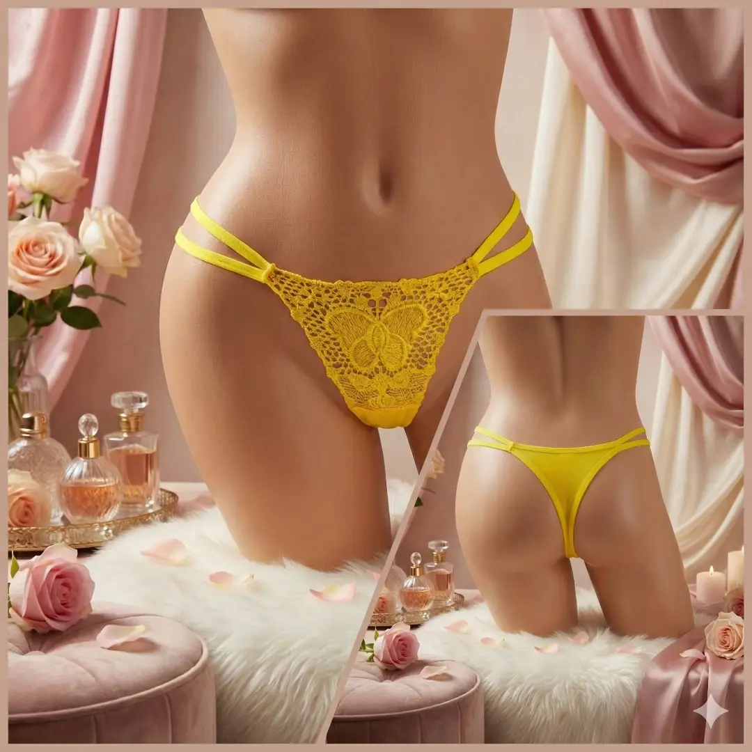 سترينغ دانتيل فخم بتصميم "الفراشة" 🦋، مع سيور جانبية مزدوجة بتجنن 😍 الوان بتاخد العقل وقماش مريح وناعم عالبشرة 👌💖.