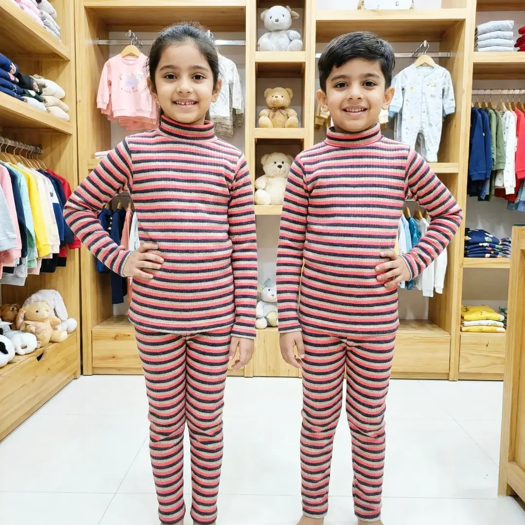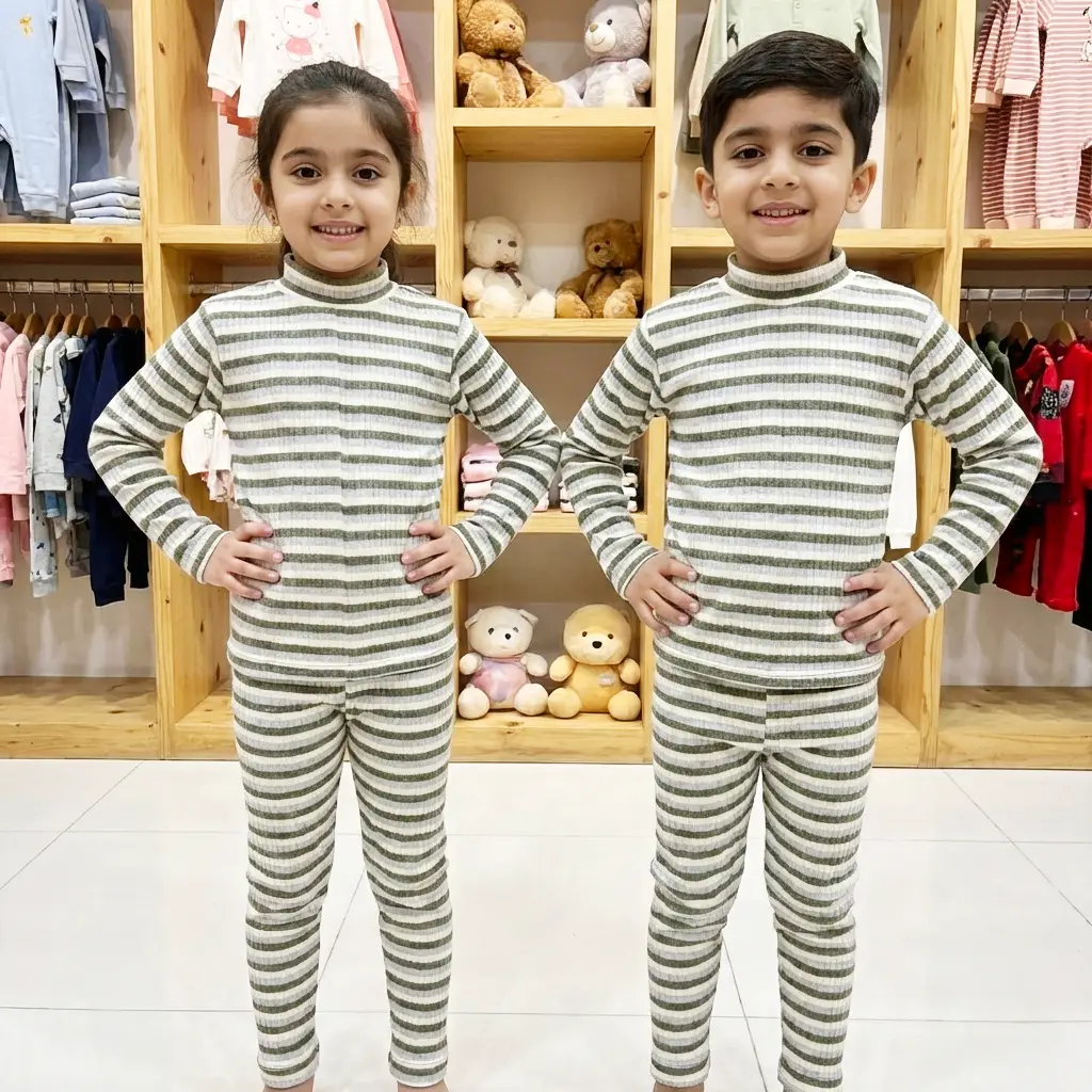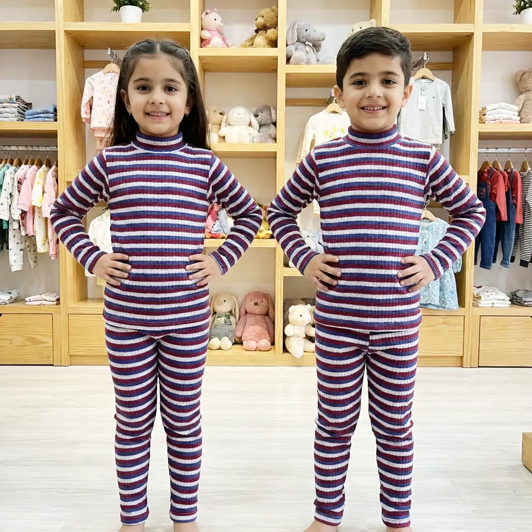 طقم بيجامة الدفا المقلّمة بناتي وصبياني نوع تقيل🧣بيجامة قماشتها مضلعة مقلمة وقبتها عالية لتحمي ولادك من البرد 🎀😎