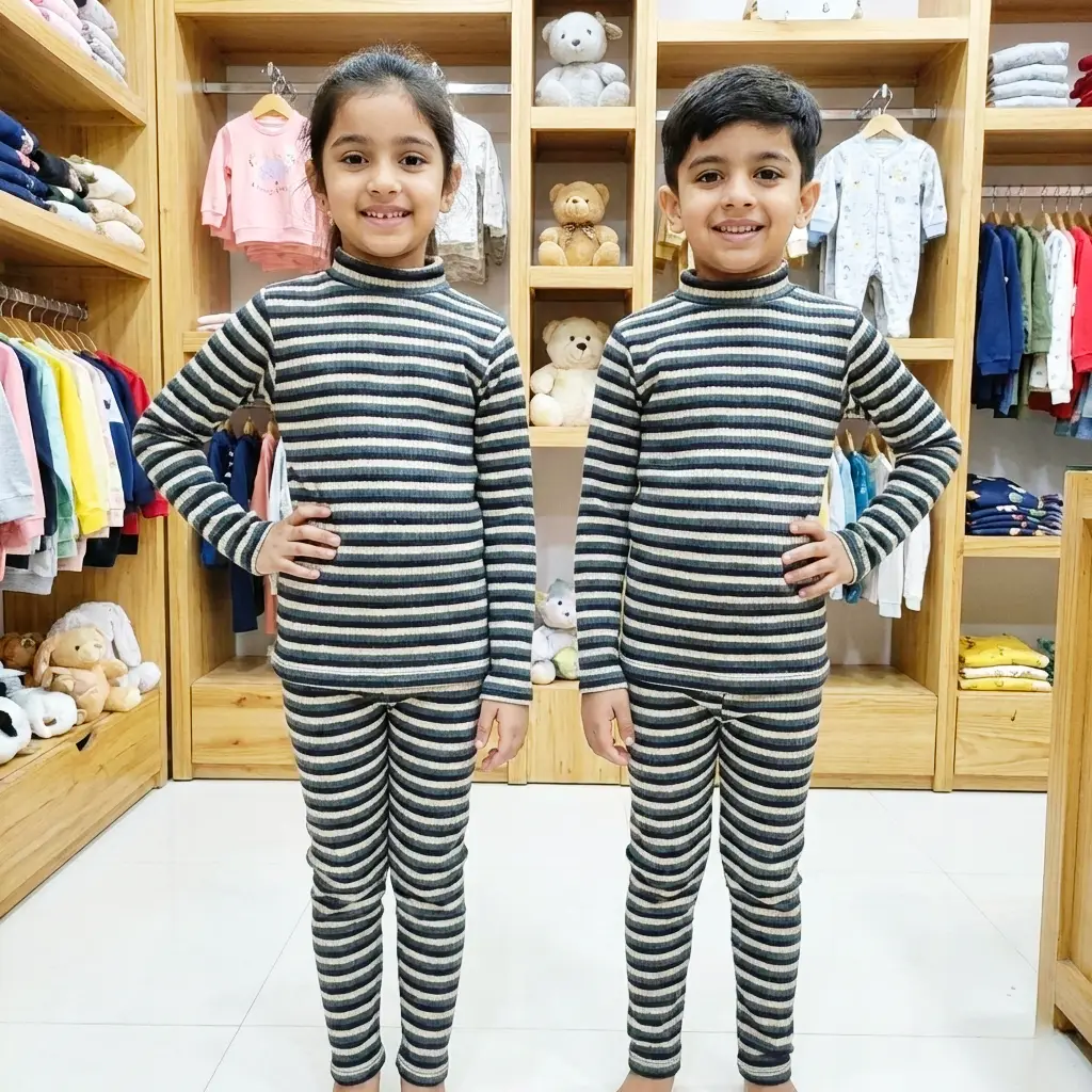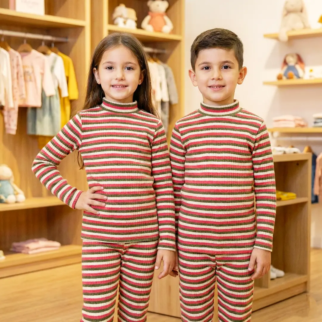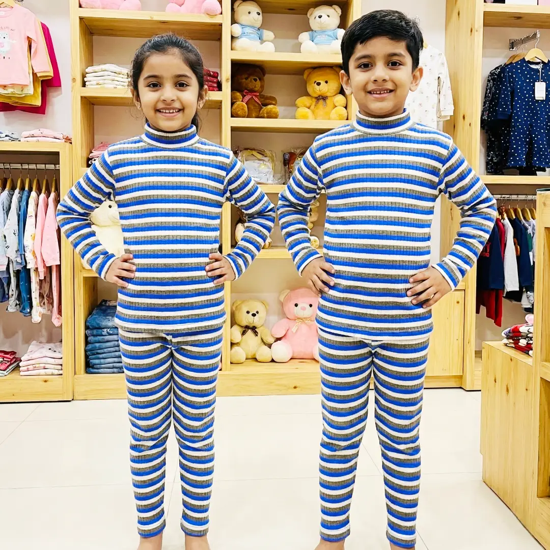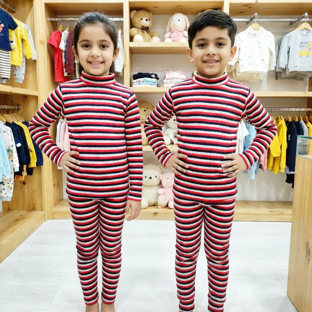 طقم بيجامة الدفا المقلّمة بناتي وصبياني نوع تقيل🧣بيجامة قماشتها مضلعة مقلمة وقبتها عالية لتحمي ولادك من البرد 🎀😎