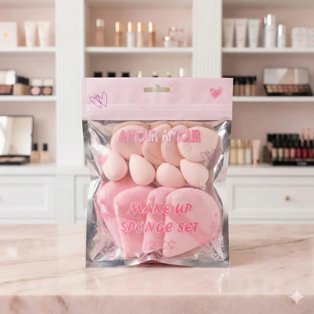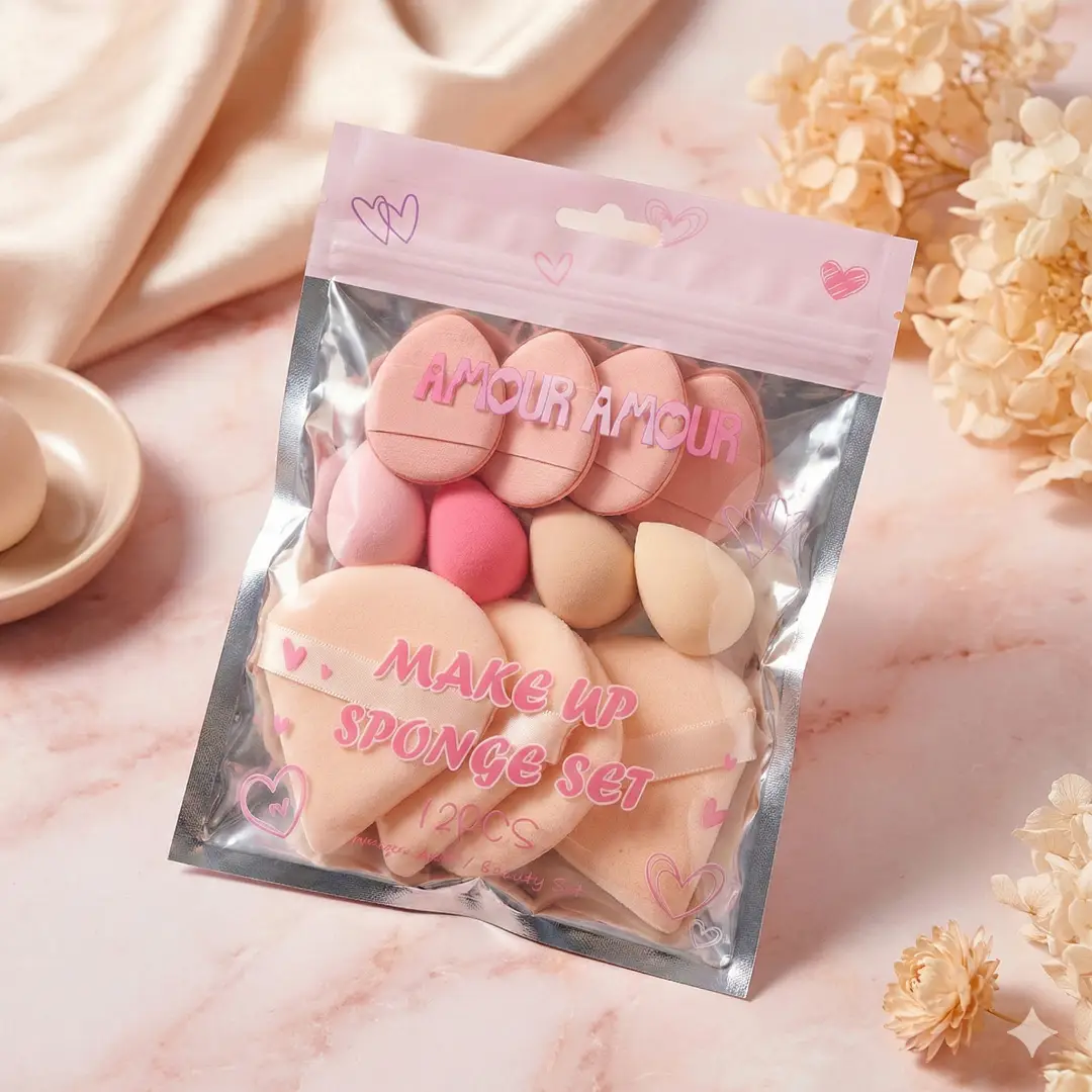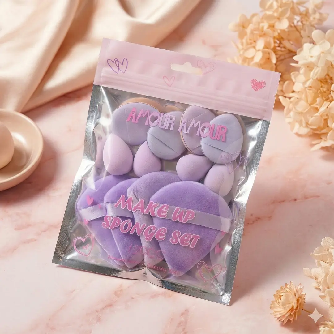 مجموعة متكاملة وفاخرة من إسفنجات المكياج الناعمة باللون الوردي الجذاب. تحتوي على أشكال قلوب وبيضاوية متعددة الأحجام لتوزيع الأساس والبودرة بدقة واحترافية، لبشرة خالية من العيوب ومكياج مثالي. 🌸✨🎀