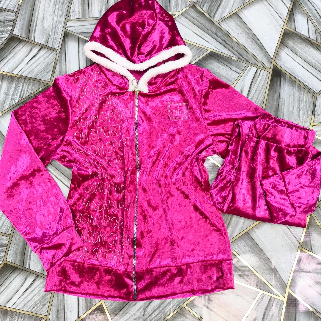 خليكي دايماً "كيوت" ودافية مع هالطقم المخملي اللي بياخد العقل! ✨ قماشته مخمل ناعم بلمعة بتسحر، والقبوعة مزينة بفرو أبيض ليعطيكي لمسة دلال وأنوثة ما بتتوصف 🧸💖