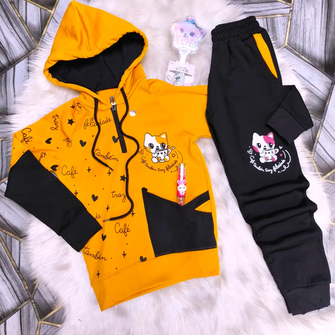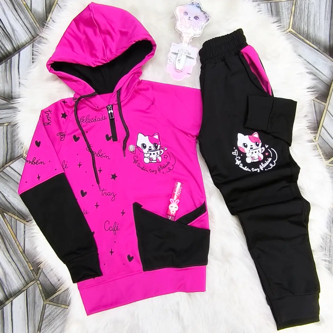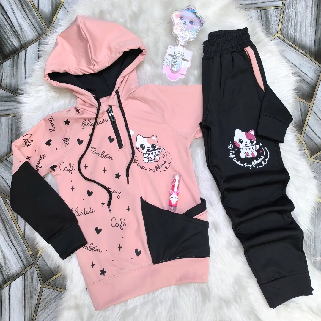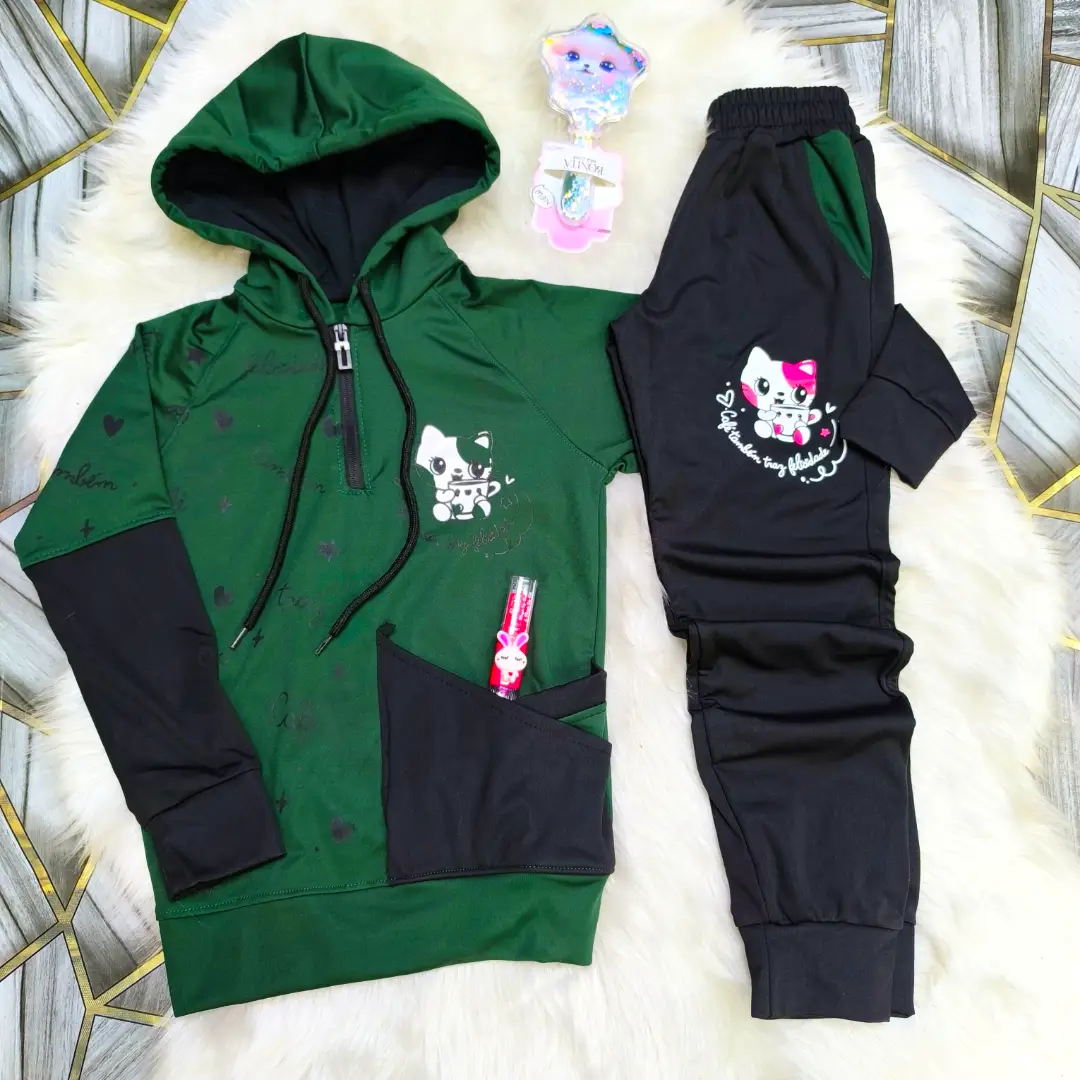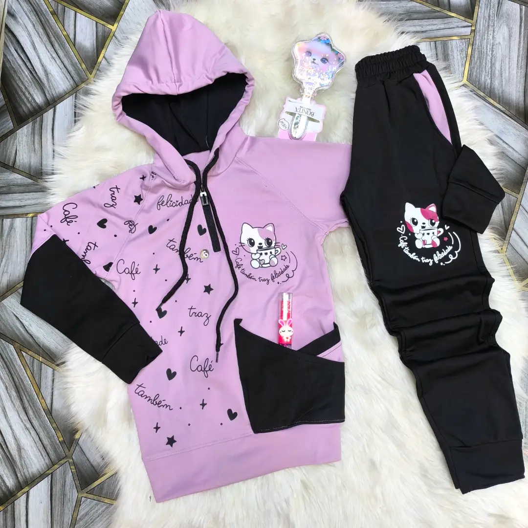 بيجامة ماليزي مصوف فل ليكرا بناتي دافي وكيوت برسمة القطة 🐈🎀