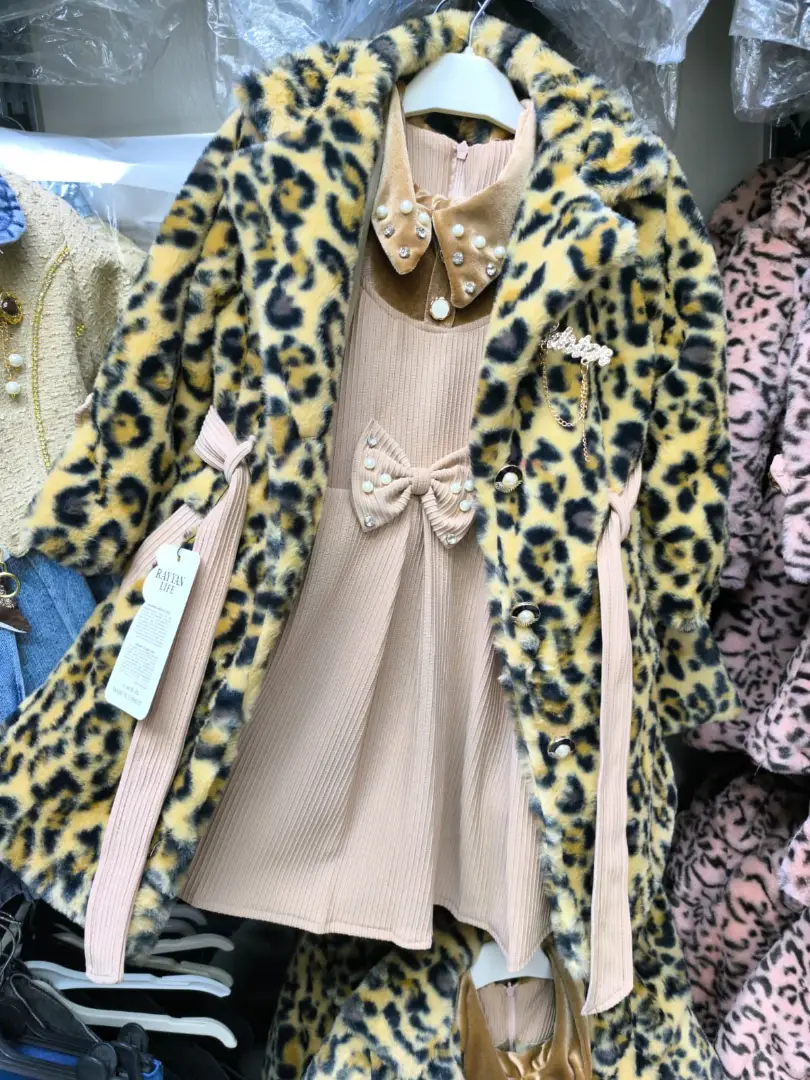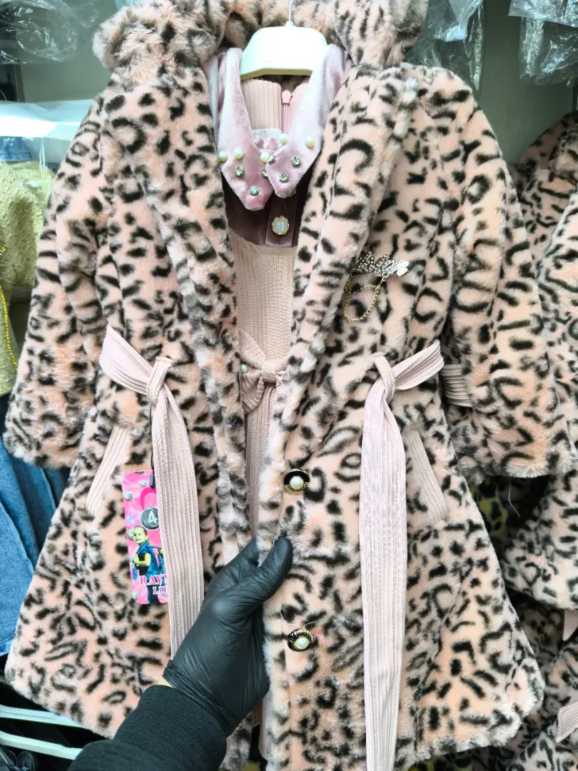 طقم ليتل ليدي للعيد (فستان ومانطو فرو إيطالي) 🐆💖