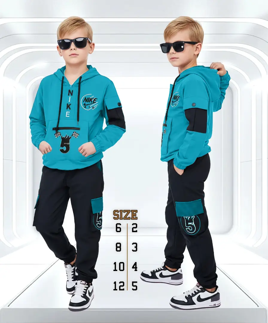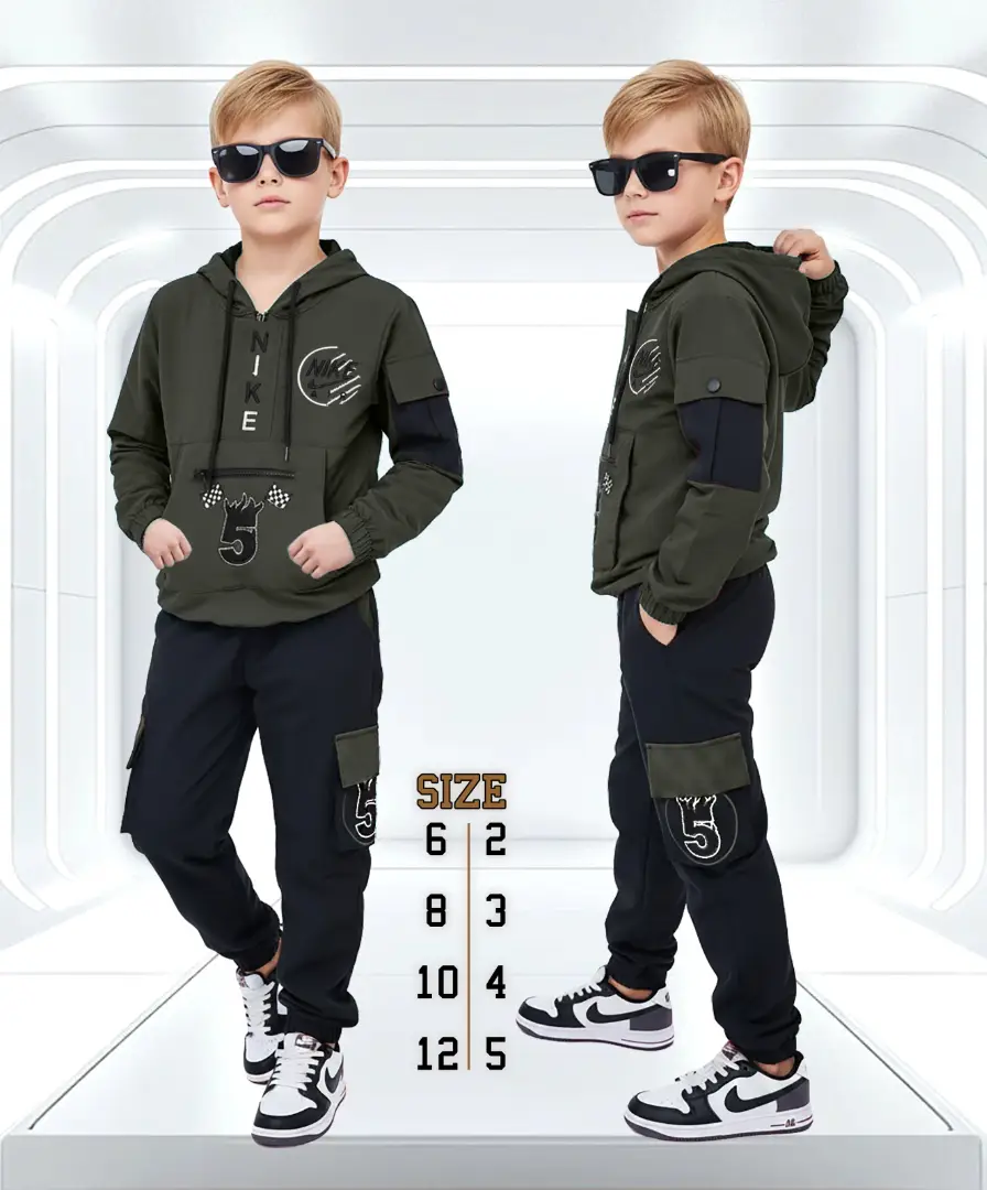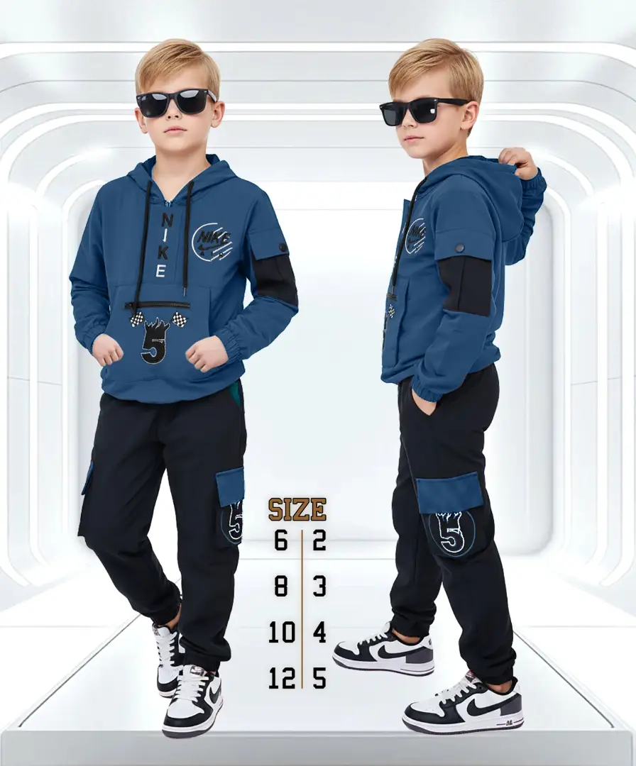 قطعتين مريحين كتير (كنزة بطاقية دافية وبنطلون)، مصنوعة من قماش كولمبي نخب أول ليرتاحوا ويلعبوا بكل حريتهم 🏠🏃♂️